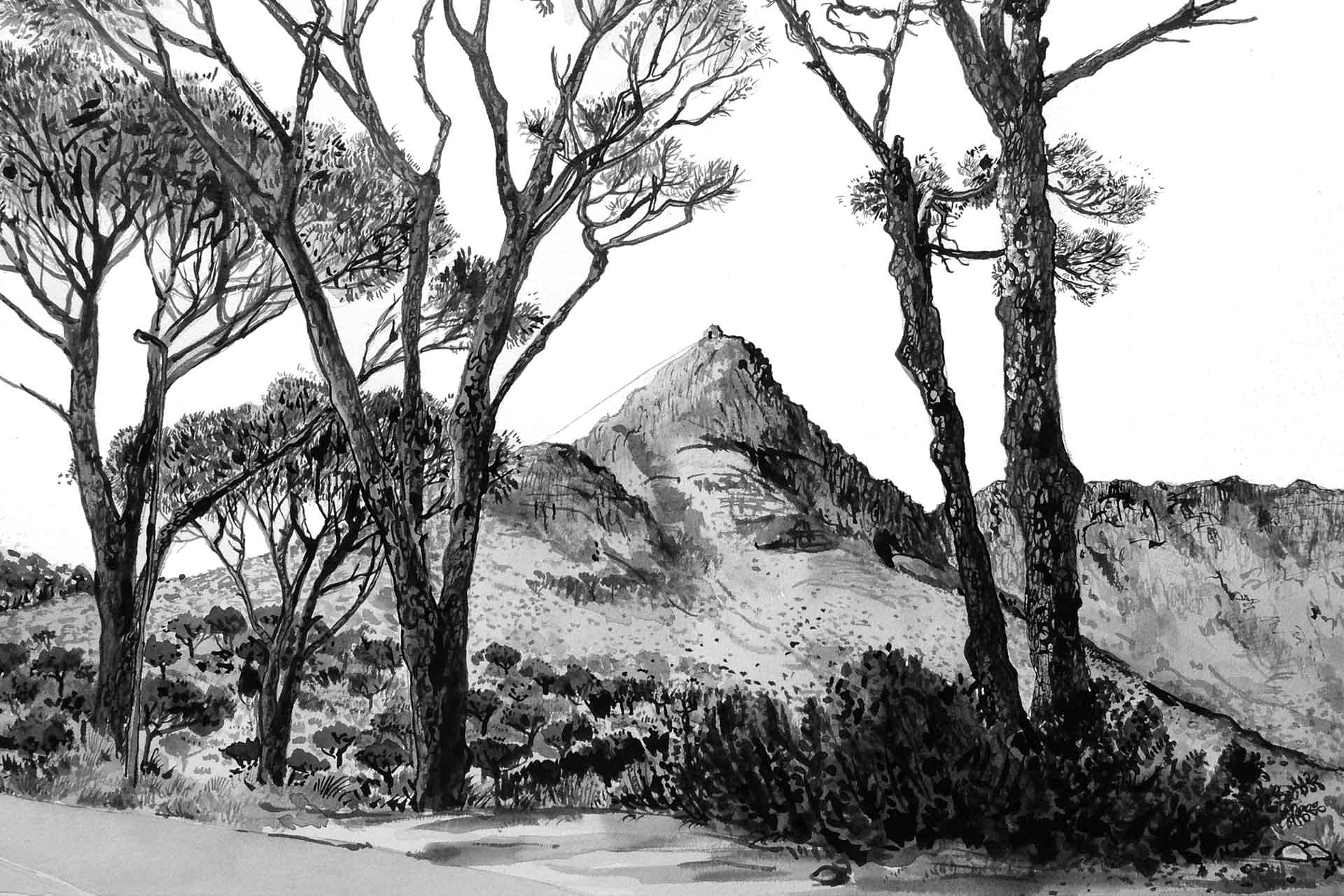 Kloof Road to Camps Bay is a wallpaper design that forms part of our CS&Co collection. It is by the artist Lucie Demoyencourt. As with all our designs, it will be redesigned to suit your wall size and shape.