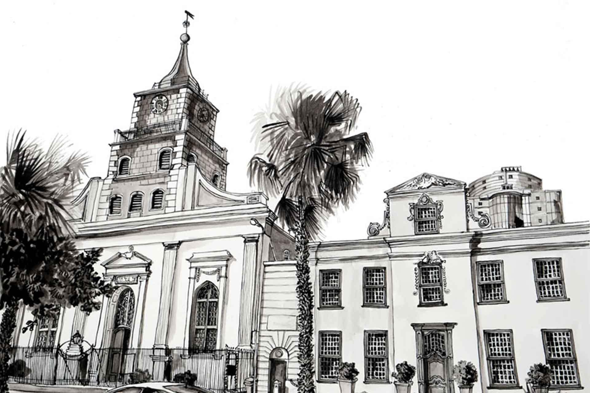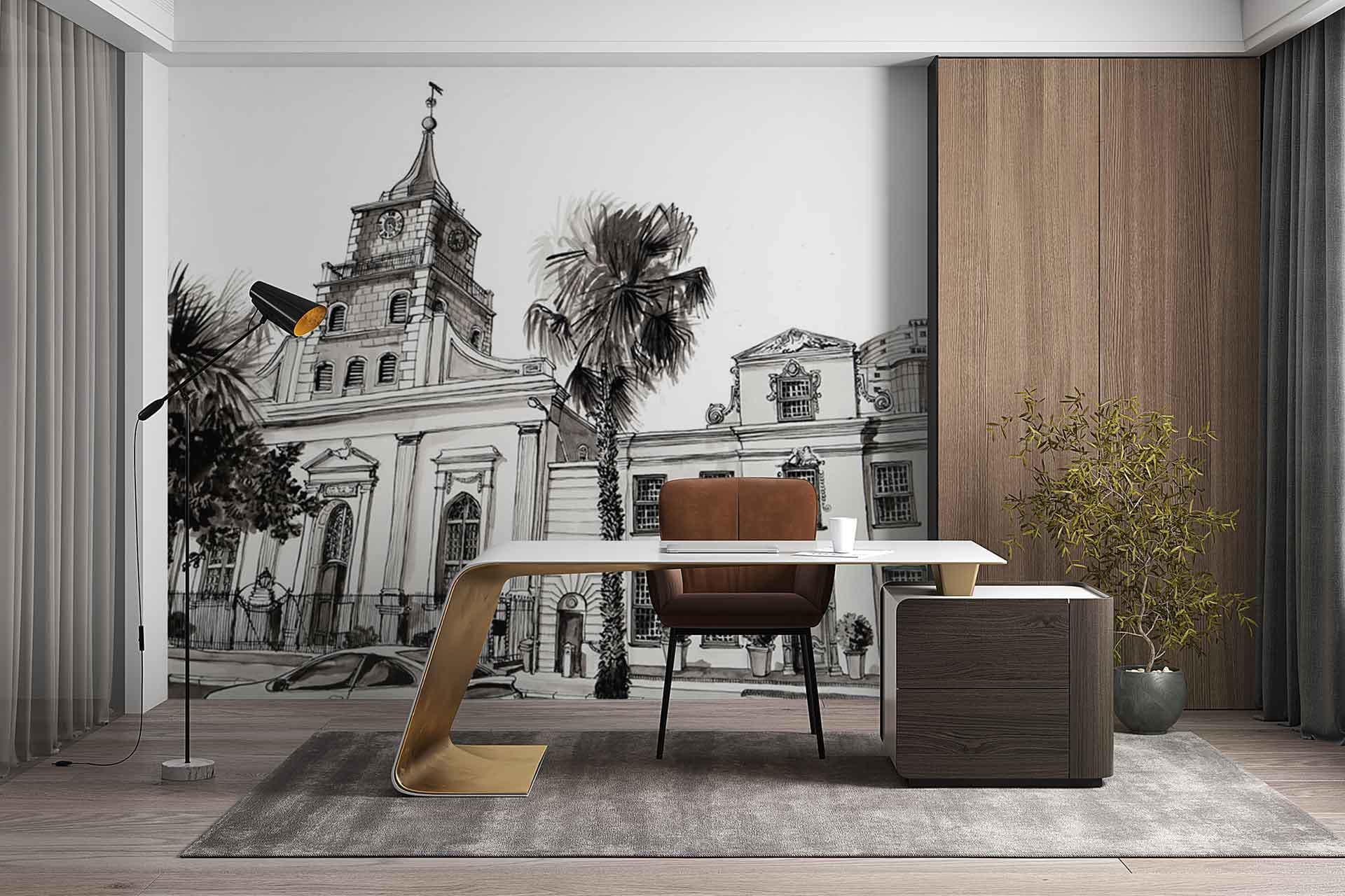 Lutheran Church is a wallpaper design that forms part of our CS&Co collection. It is by the artist Lucie Demoyencourt. As with all our designs, it will be redesigned to suit your wall size and shape.