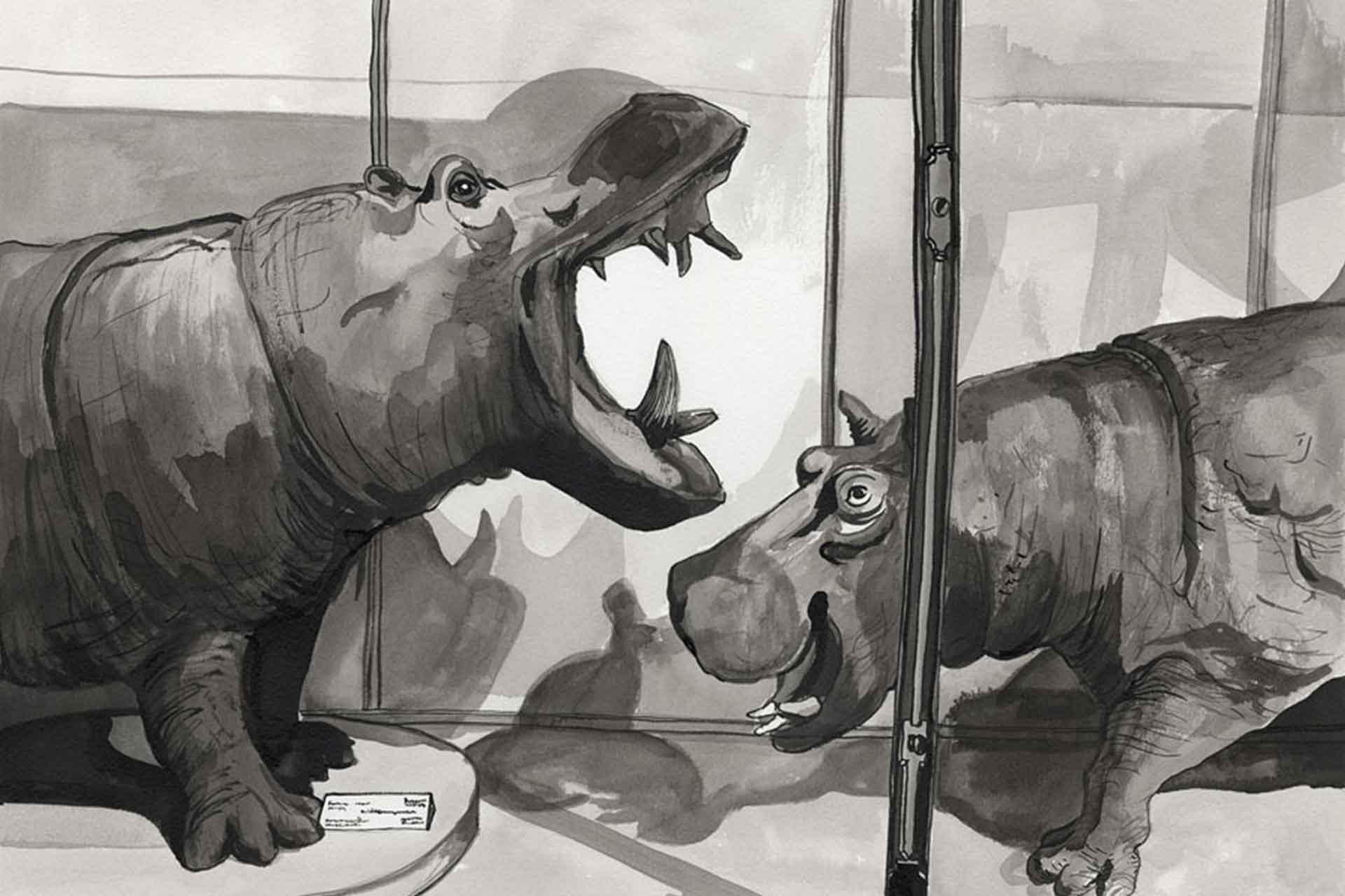 Museum Hippos is a wallpaper design that forms part of our CS&Co collection. It is by the artist Lucie Demoyencourt. As with all our designs, it will be redesigned to suit your wall size and shape.
