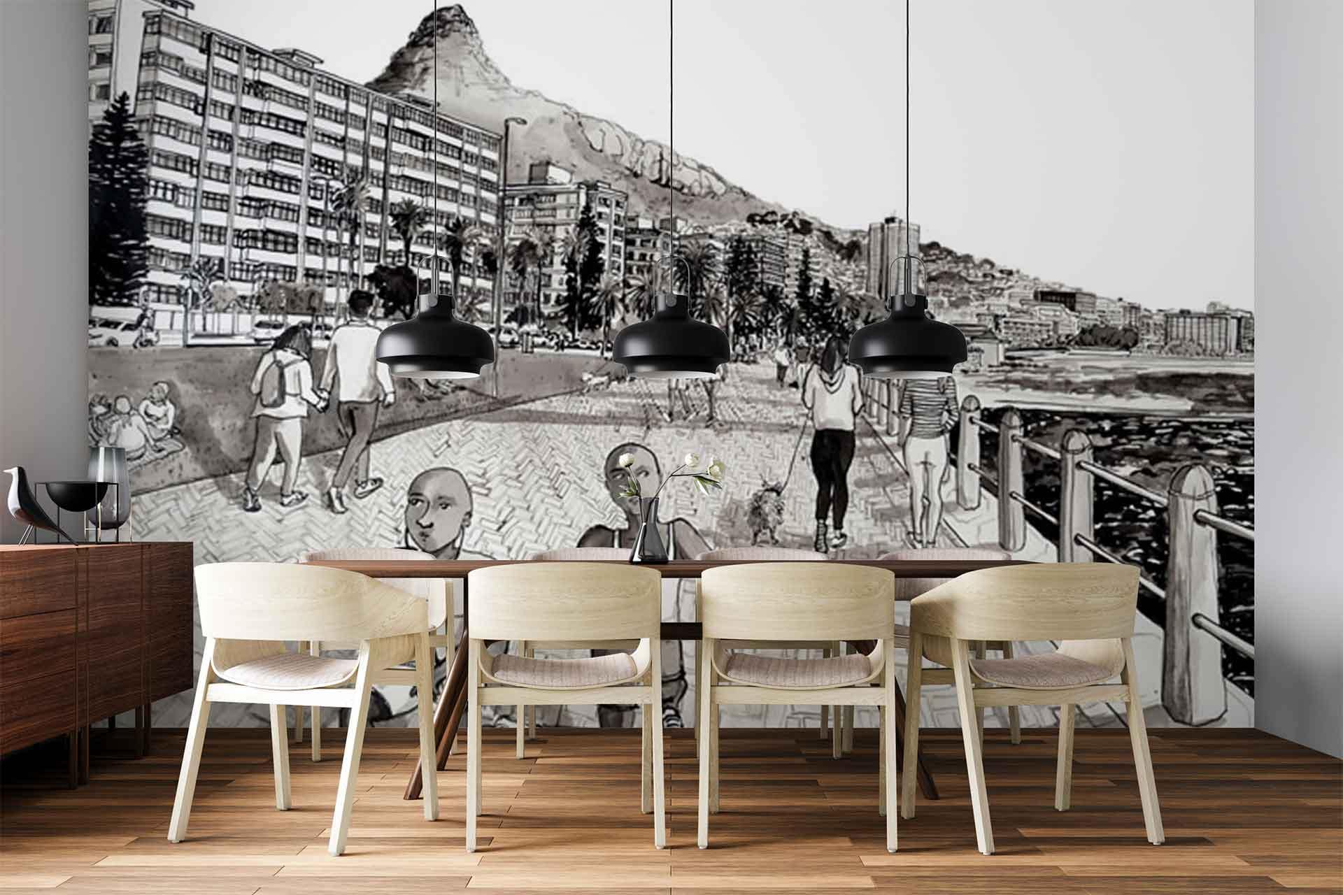 Rush Hour, Promenade is a wallpaper design that forms part of our CS&Co collection. It is by the artist Lucie Demoyencourt. As with all our designs, it will be redesigned to suit your wall size and shape.