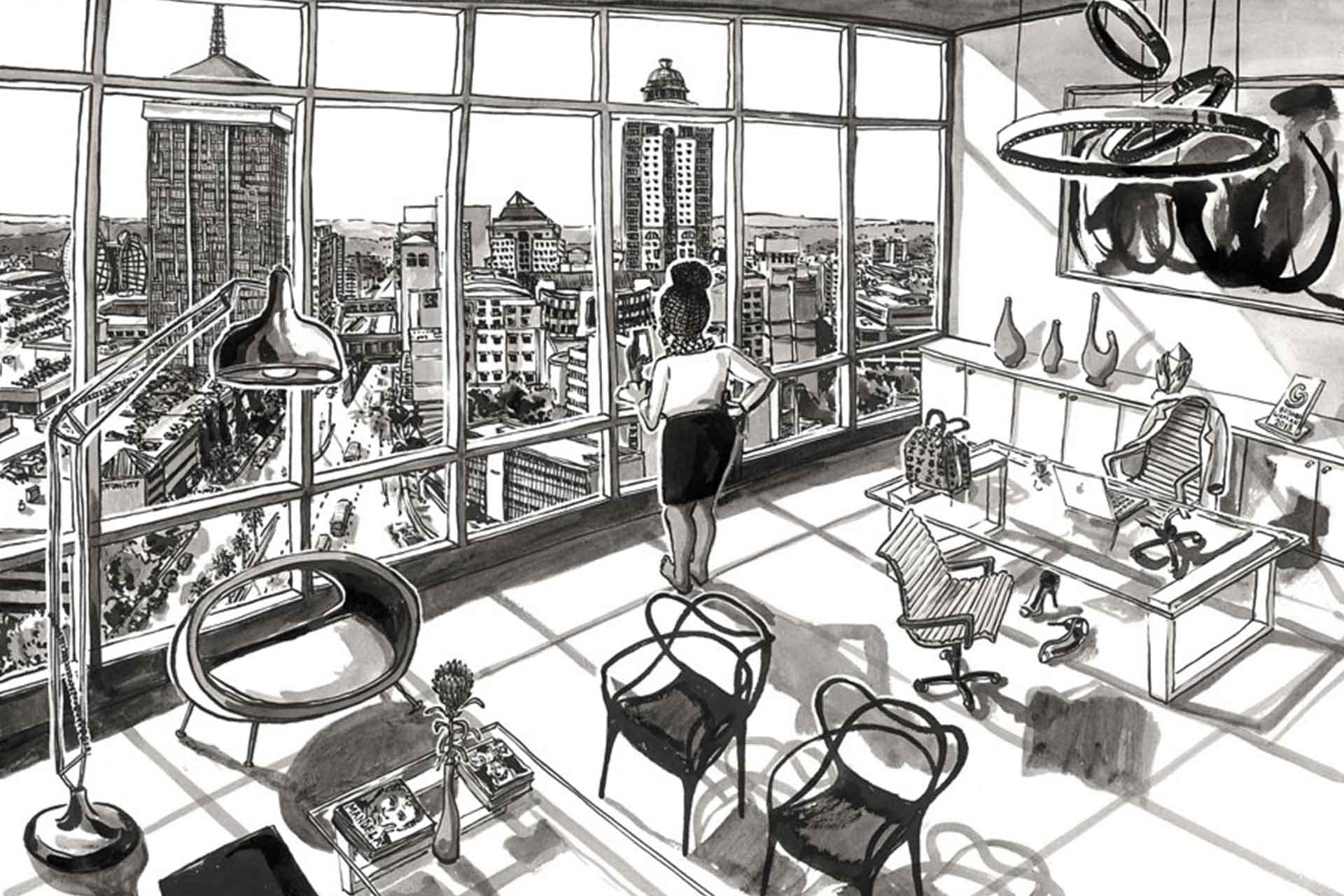 Sandton Boss Lady is a wallpaper design that forms part of our CS&Co collection. It is by the artist Lucie Demoyencourt. As with all our designs, it will be redesigned to suit your wall size and shape.