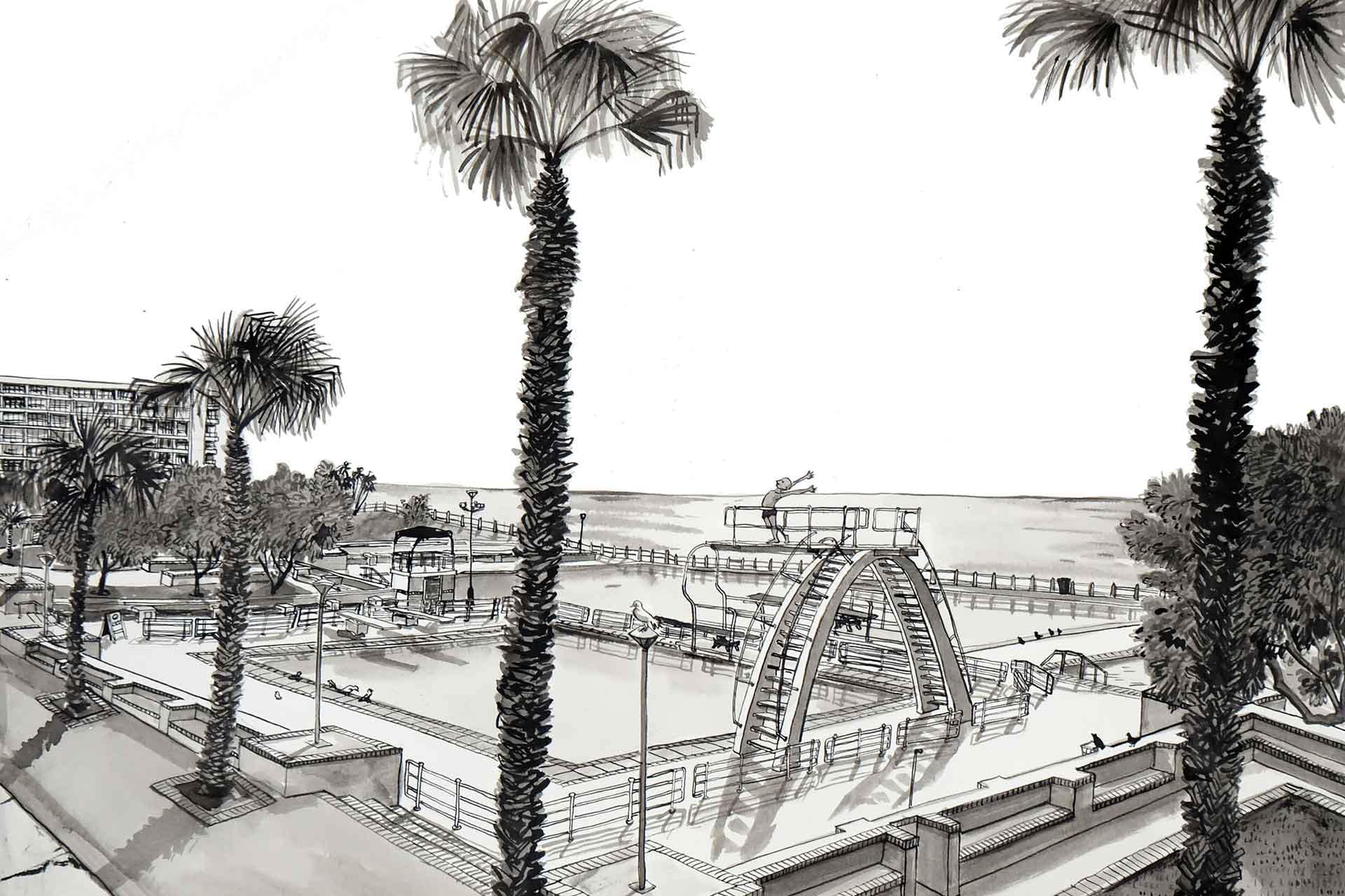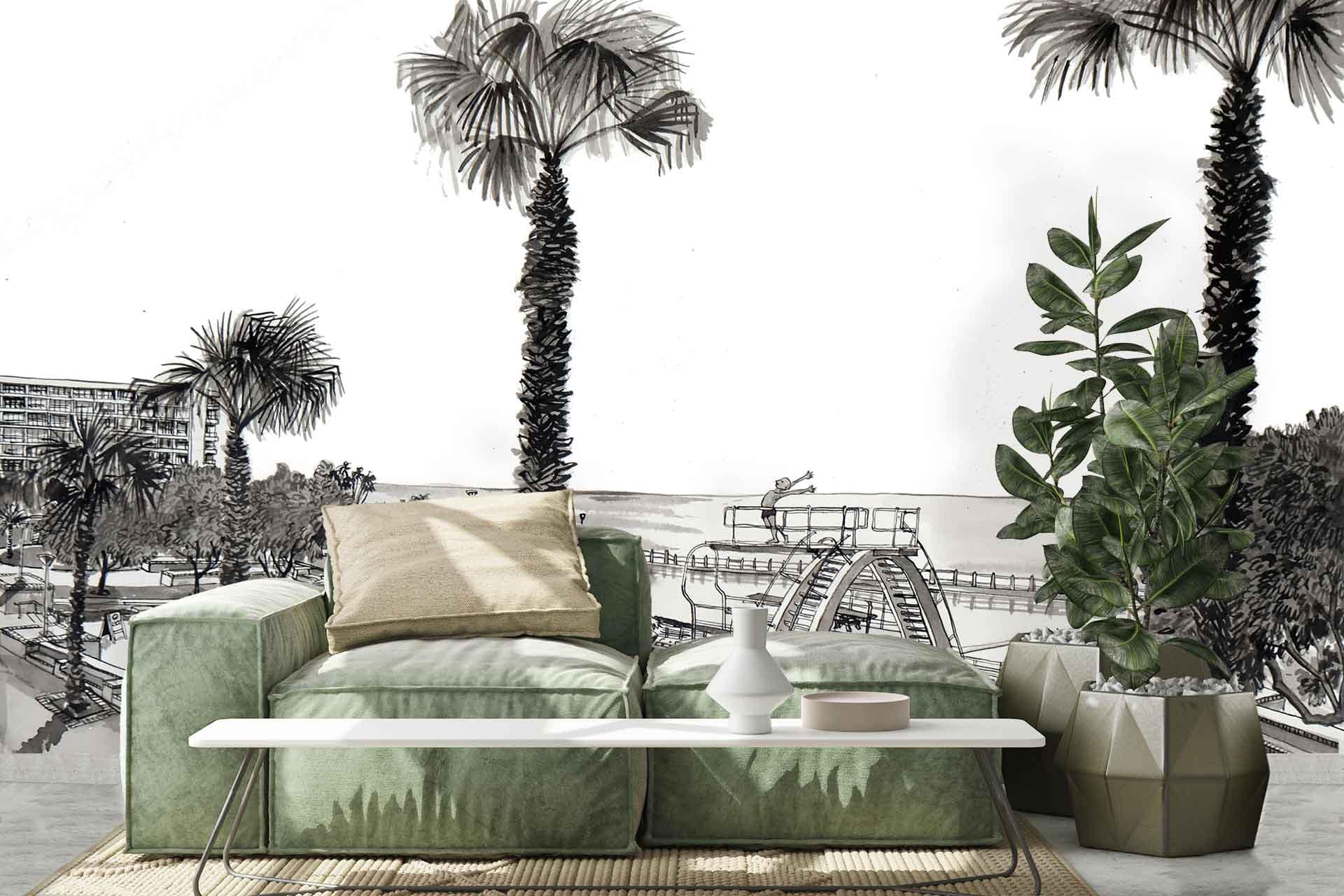 The Diver is a wallpaper design that forms part of our CS&Co collection. It is by the artist Lucie Demoyencourt. As with all our designs, it will be redesigned to suit your wall size and shape.