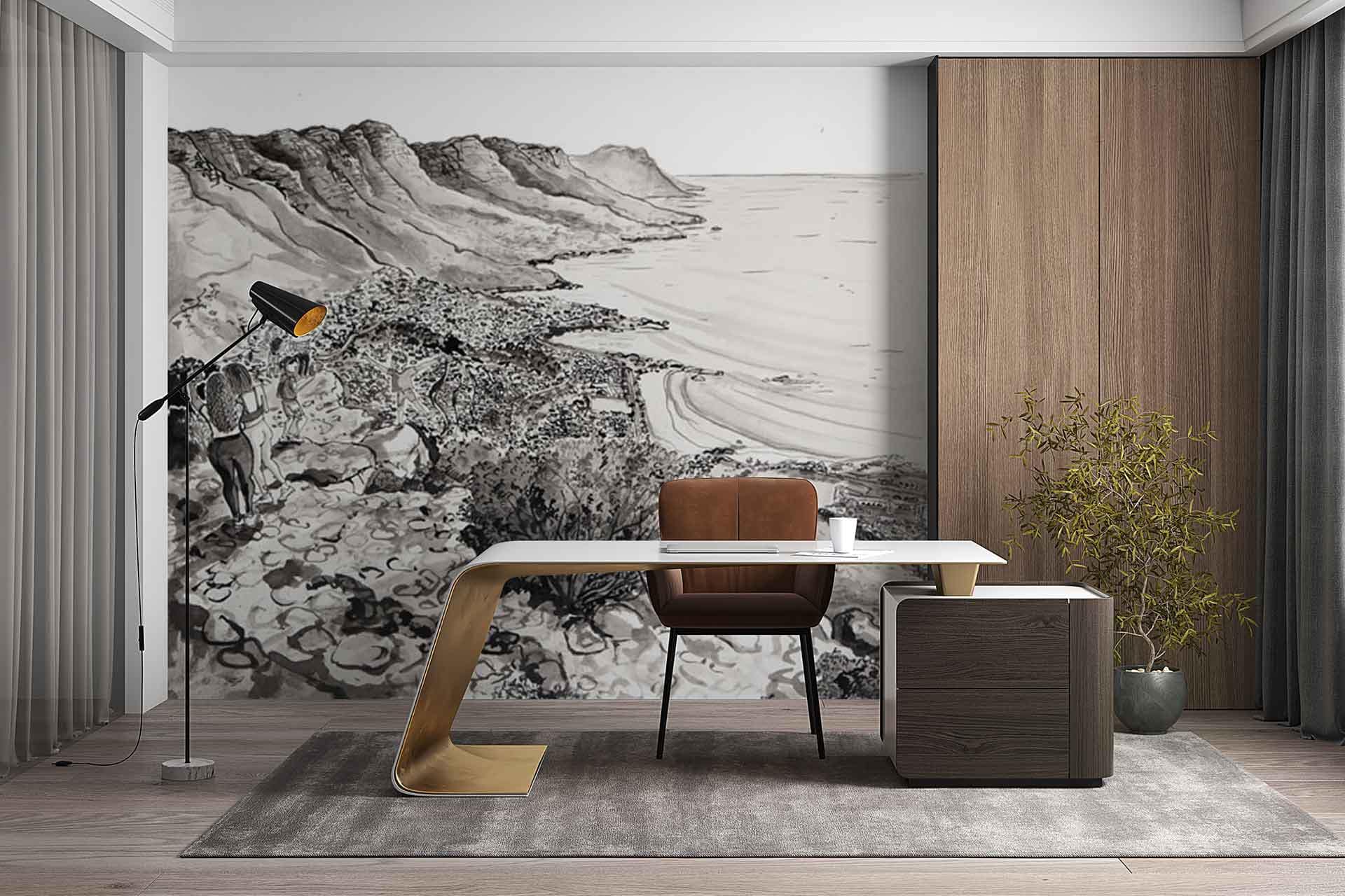 Top Of Lions Head, Sea is a wallpaper design that forms part of our CS&Co collection. It is by the artist Lucie Demoyencourt. As with all our designs, it will be redesigned to suit your wall size and shape.
