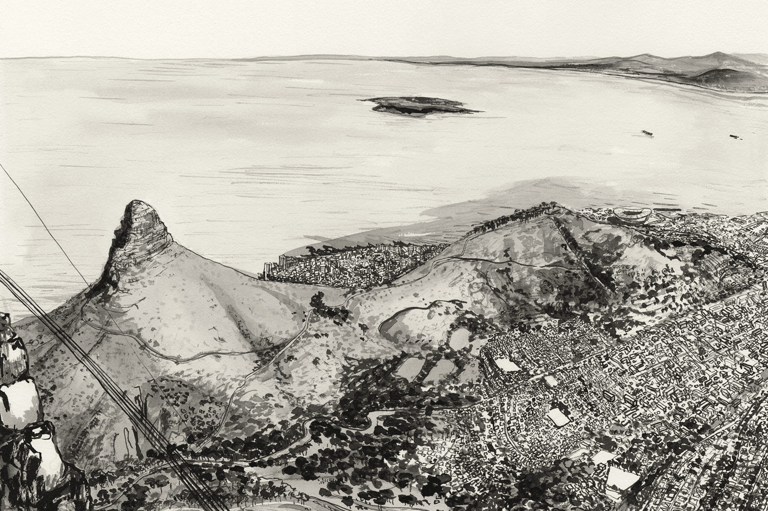 Top of Table Mountain is a wallpaper design that forms part of our CS&Co collection. It is by the artist Lucie Demoyencourt. As with all our designs, it will be redesigned to suit your wall size and shape.
