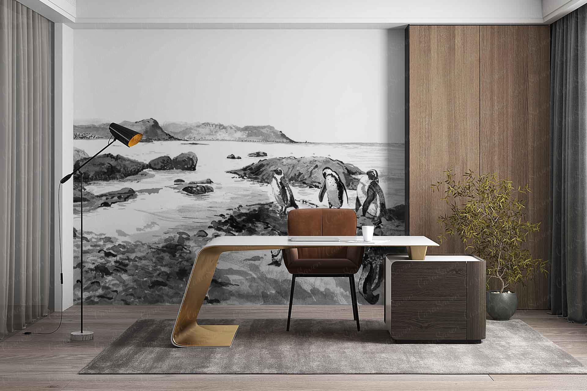 Waters Edge is a wallpaper design that forms part of our CS&Co collection. It is by the artist Lucie Demoyencourt. As with all our designs, it will be redesigned to suit your wall size and shape.