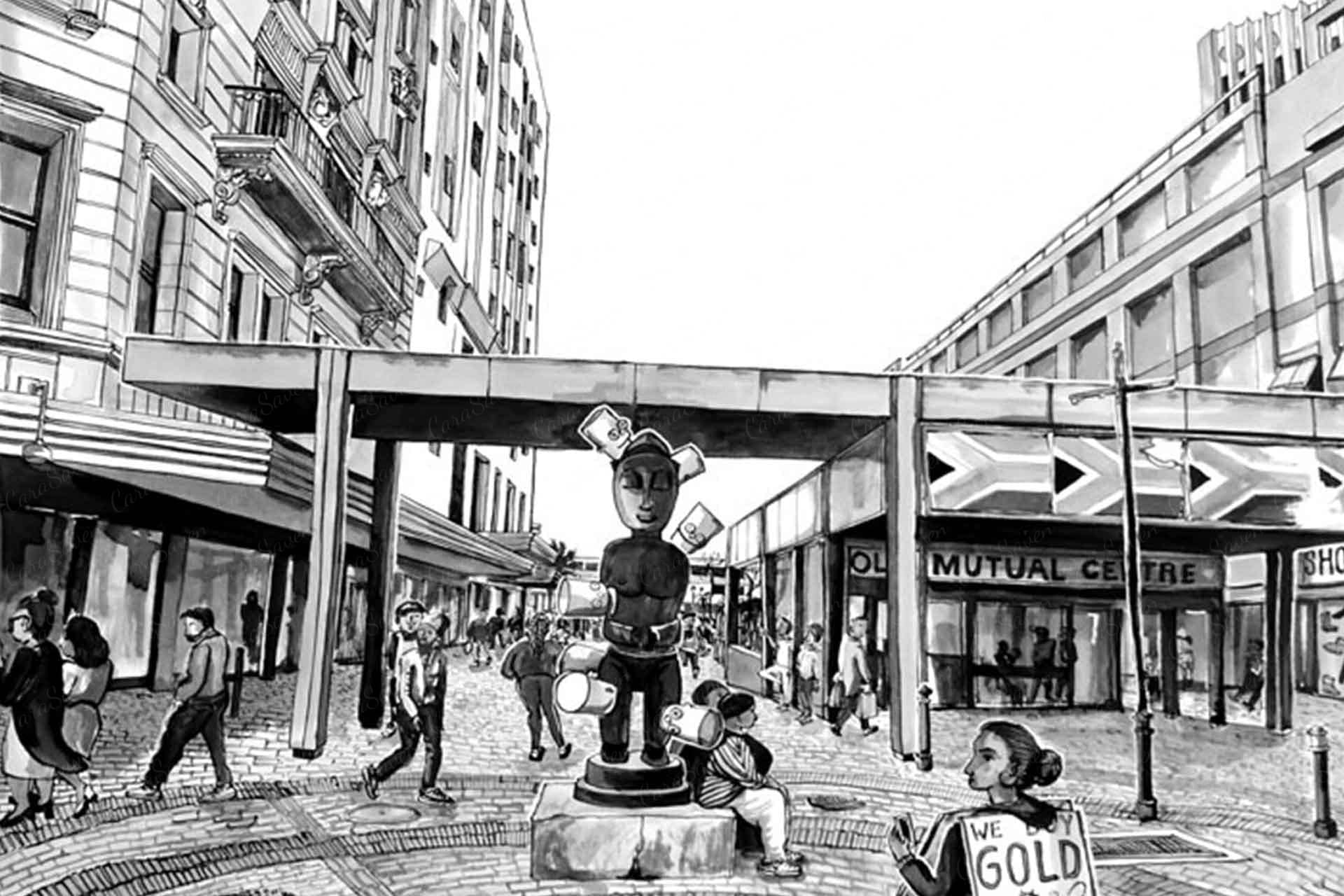 We Buy Gold is a wallpaper design that forms part of our CS&Co collection. It is by the artist Lucie Demoyencourt. As with all our designs, it will be redesigned to suit your wall size and shape.