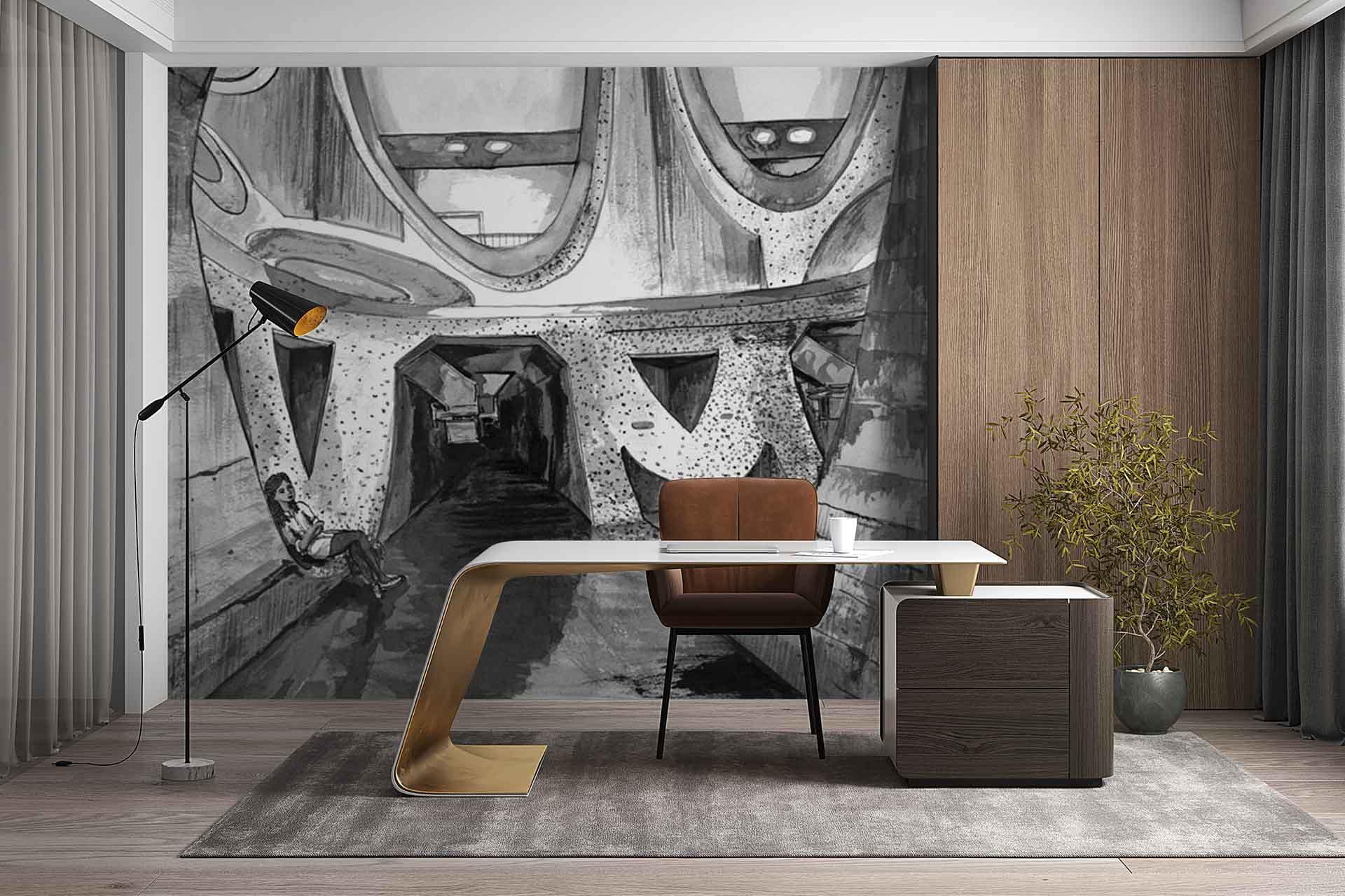 ZEITZ 08 is a wallpaper design that forms part of our CS&Co collection. It is by the artist Lucie Demoyencourt. As with all our designs, it will be redesigned to suit your wall size and shape.