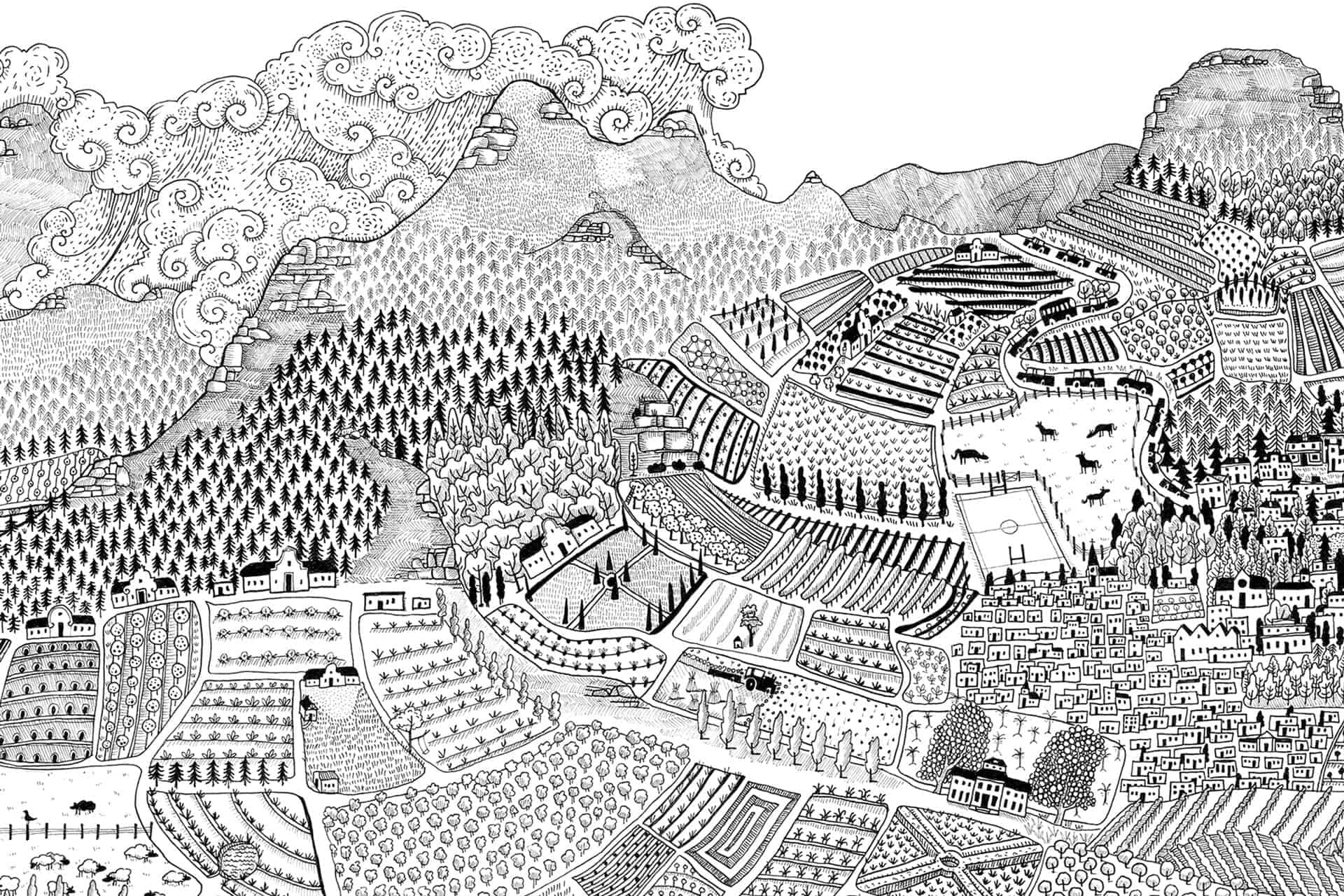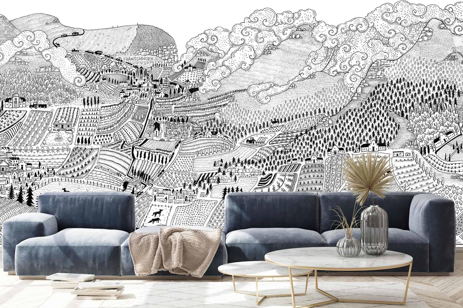 Cape Winelands is a wallpaper design that forms part of our CS&Co collection. It is by the artist Michael Chandler. As with all our designs, it will be redesigned to suit your wall size and shape.
