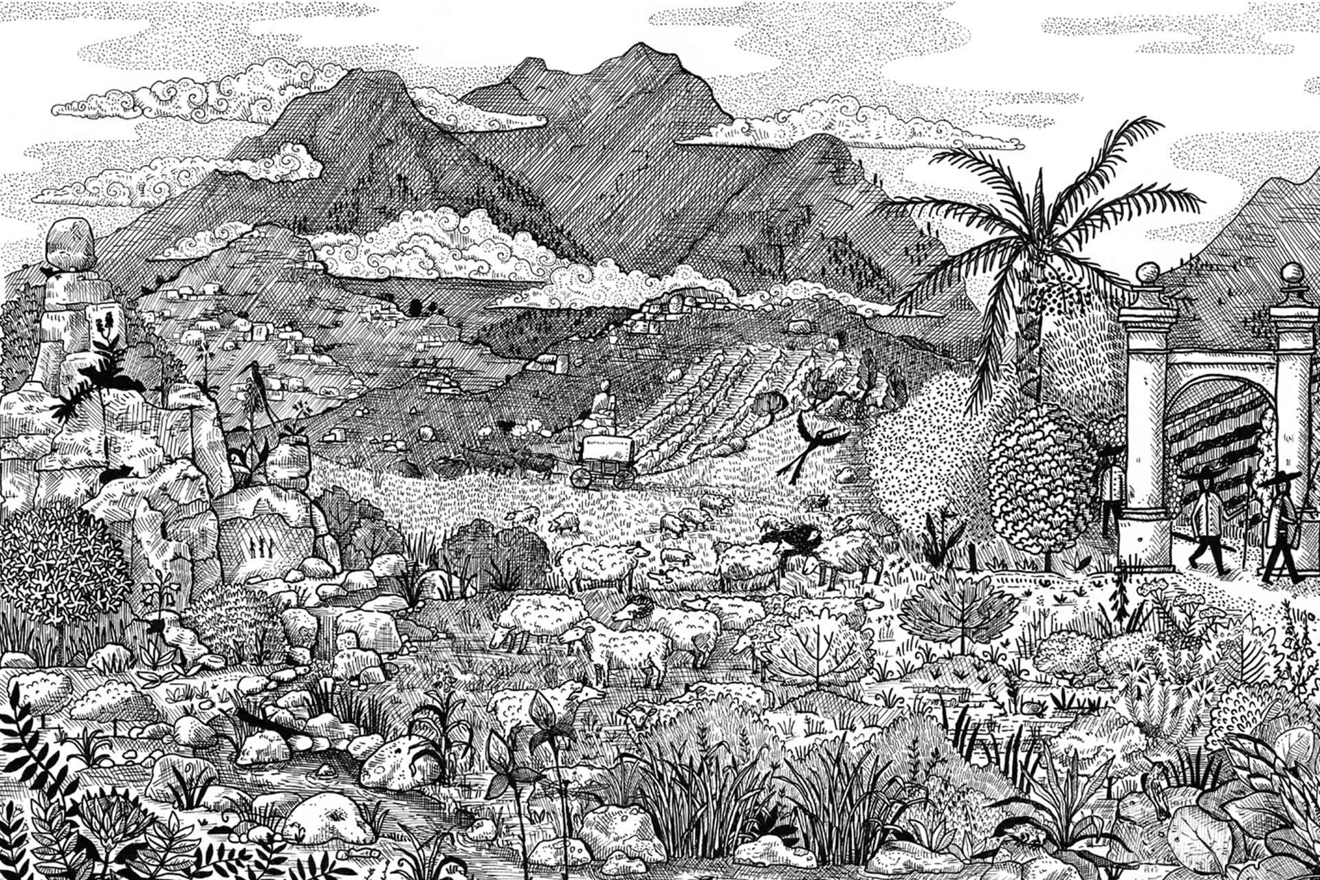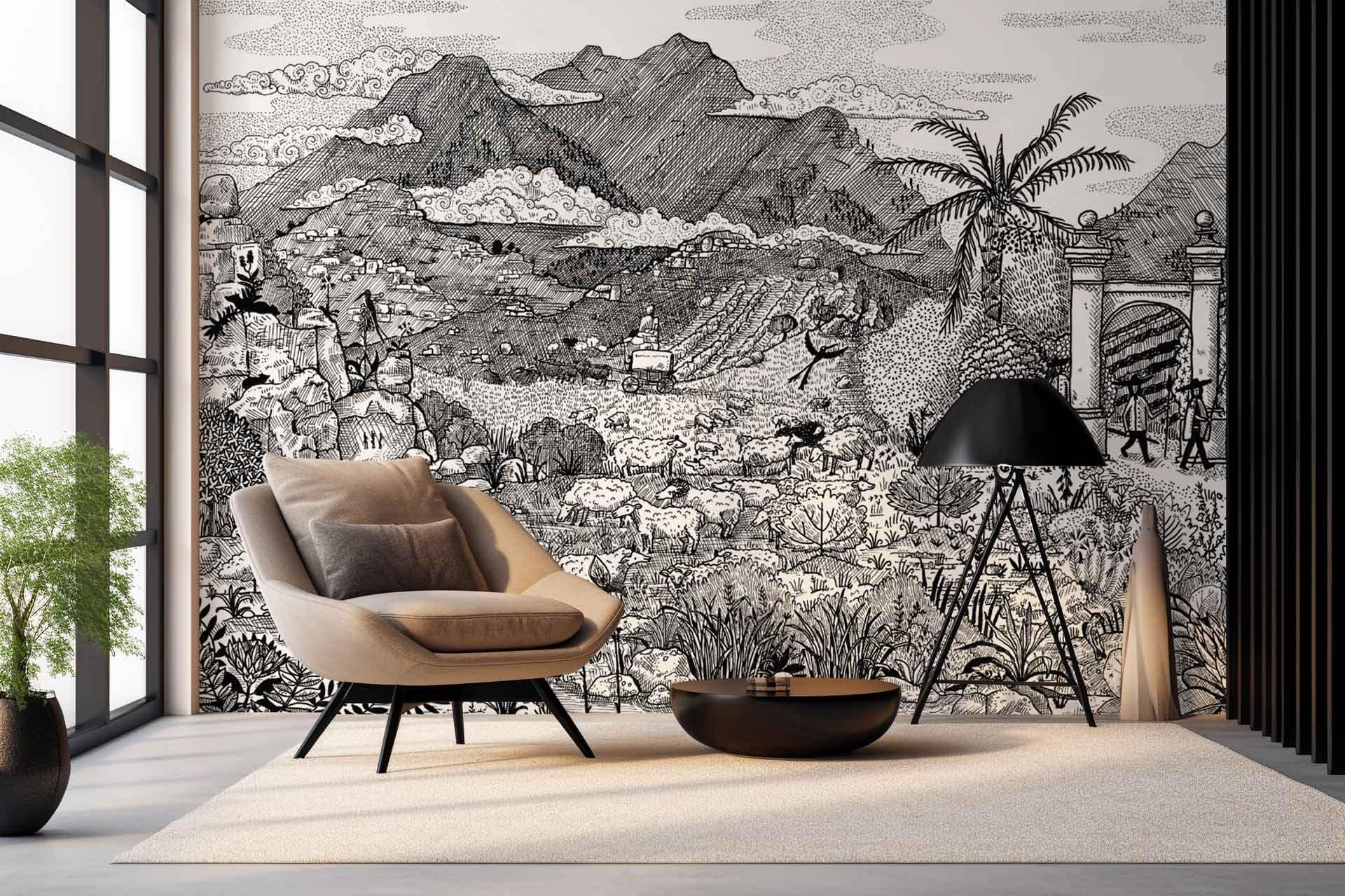 Titus and Maria 01 is a wallpaper design that forms part of our CS&Co collection. It is by the artist Michael Chandler. As with all our designs, it will be redesigned to suit your wall size and shape.