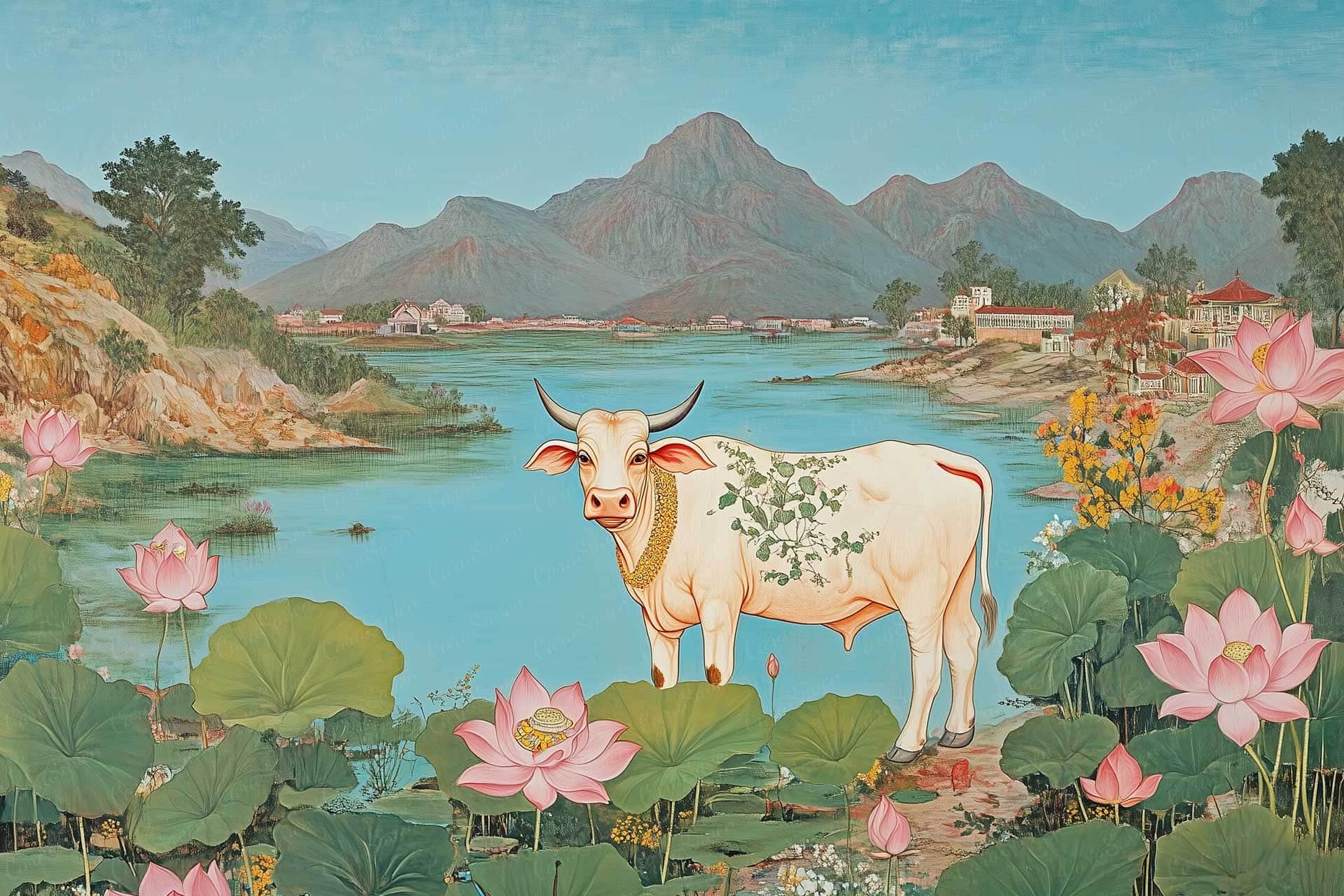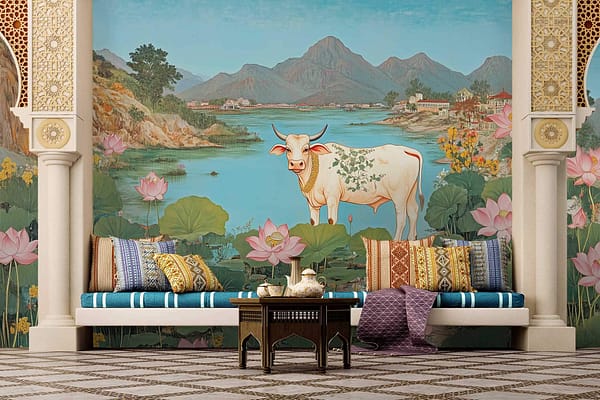 Pichhwai is a wallpaper design that is part of our Modern Murals collection. As with all our designs, it will be redesigned to suit your wall size and shape. Additional changes can be made to the colour and scale of the design at your request.