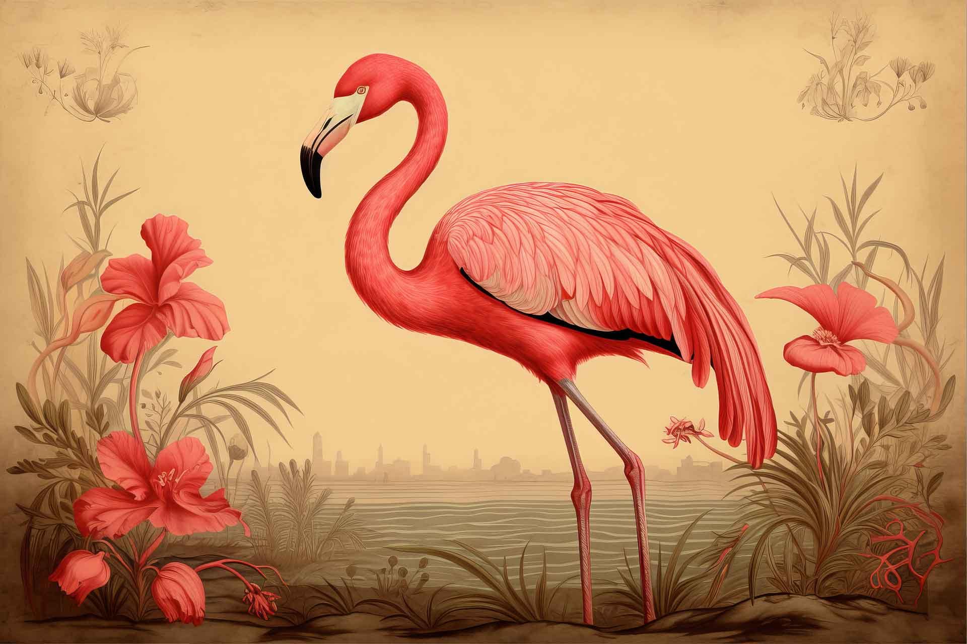 Vibrant floral and bird wallpaper featuring colorful flowers and birds in lively patterns, with bold hues of pink, green, blue, and yellow creating a dynamic focal point in the room.