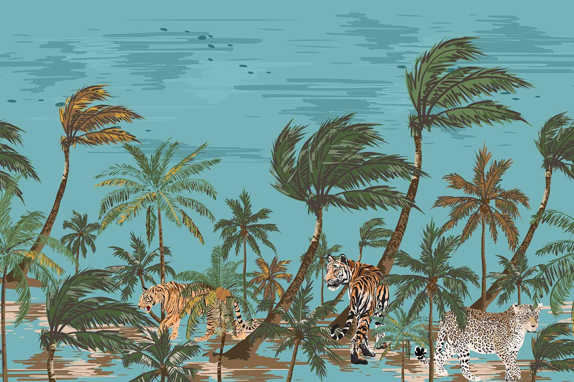 Tigers in the Breeze is a wallpaper design that is part of our Modern Murals collection. As with all our designs, it will be redesigned to suit your wall size and shape. Additional changes can be made to the colour and scale of the design at your request.