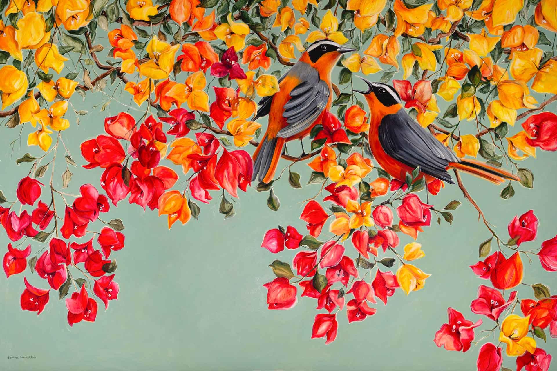 Bouganvillea Duet is a wallpaper design that forms part of our CS&Co collection. It is by the artist Nicole Sanderson. As with all our designs, it will be redesigned to suit your wall size and shape.