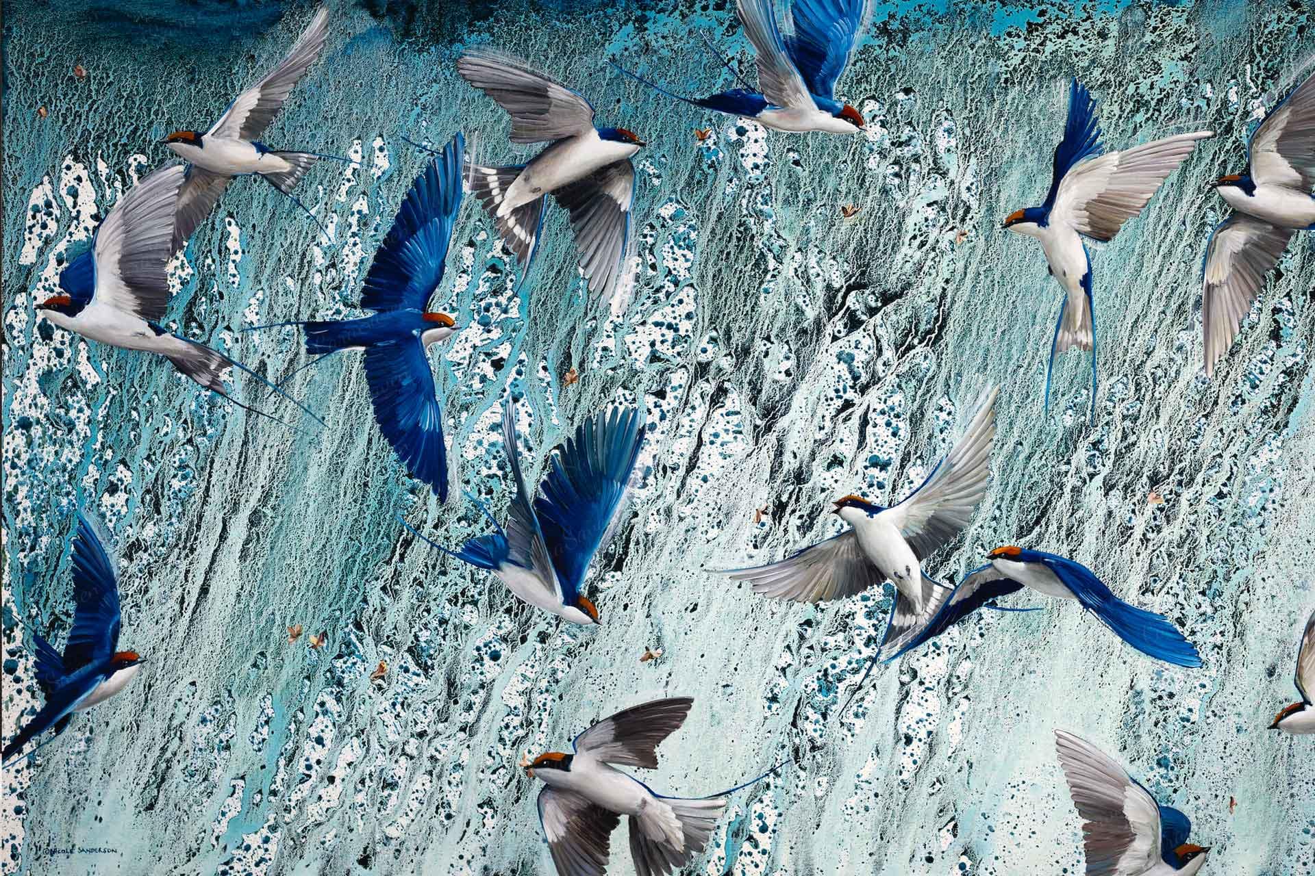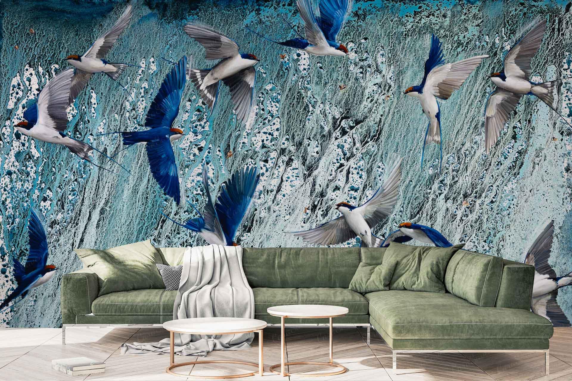 Swallows is a wallpaper design that forms part of our CS&Co collection. It is by the artist Nicole Sanderson. As with all our designs, it will be redesigned to suit your wall size and shape.