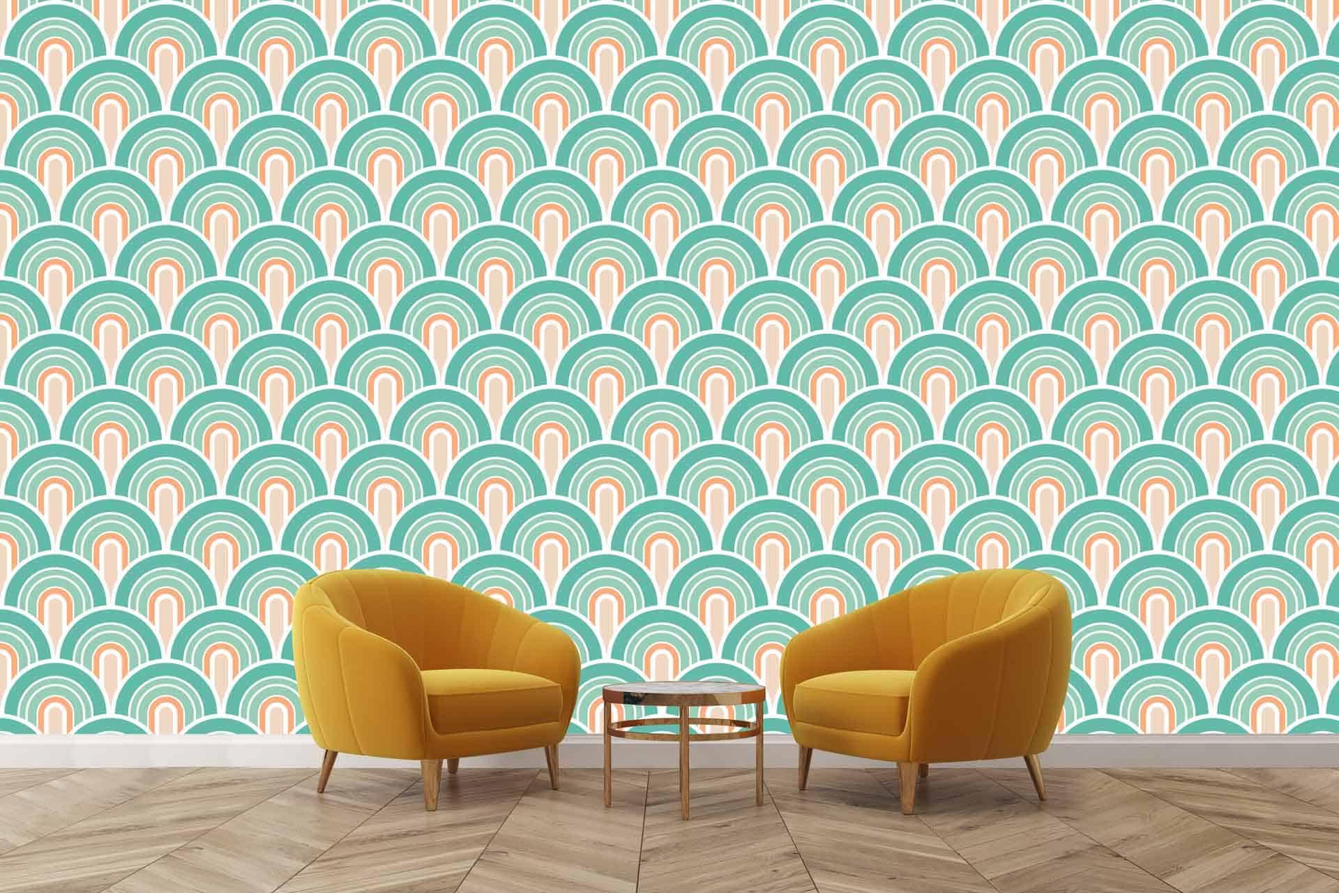 Wallpaper visualizer showcases a wallpaper design with distinct elements and colors, making patterns and shades easily searchable. The focus is on the wallpaper's features as displayed within the minimalist interface.