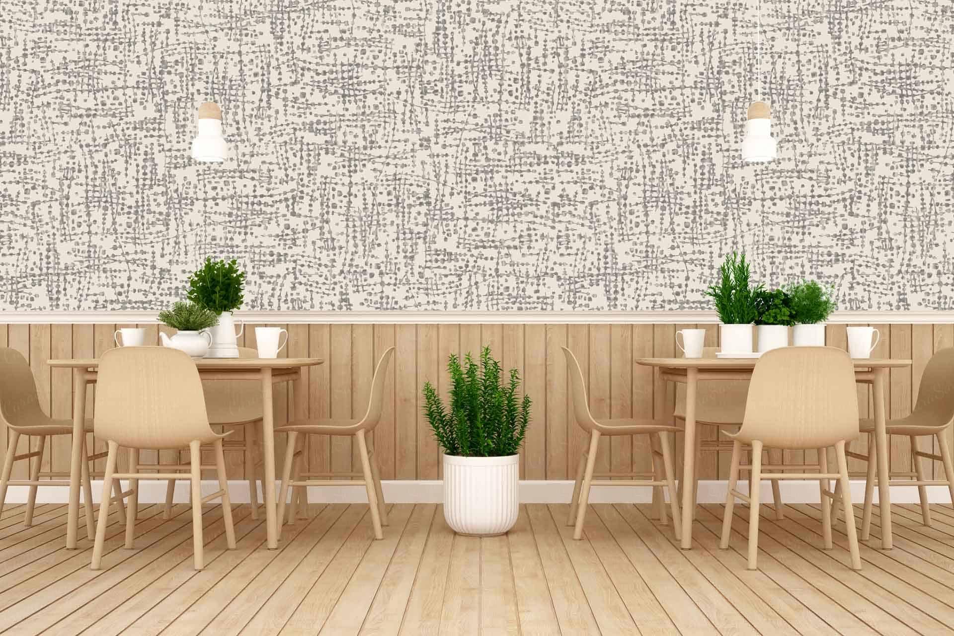 Wallpaper visualizer showcases a wallpaper design with distinct elements and colors, making patterns and shades easily searchable. The focus is on the wallpaper's features as displayed within the minimalist interface.