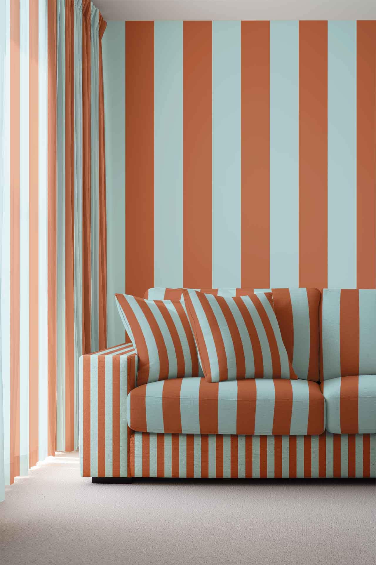 Blue & Copper Stripe is a wallpaper design that is part of our Stripes collection. As with all our designs, it will be redesigned to suit your wall size and shape. Additional changes can be made to the colour and scale of the design at your request.