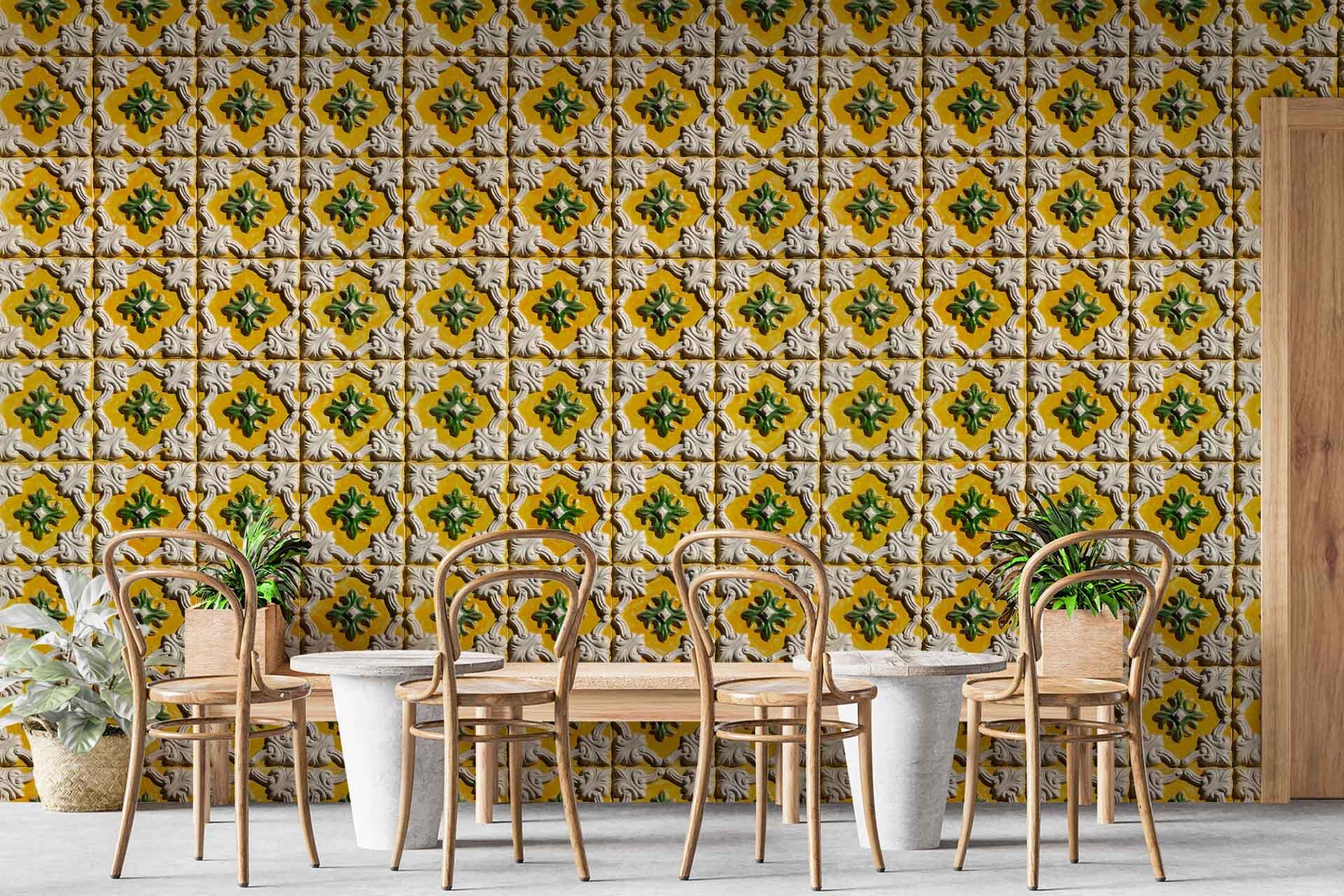 Wallpaper visualizer showcases a wallpaper design with distinct elements and colors, making patterns and shades easily searchable. The focus is on the wallpaper's features as displayed within the minimalist interface.
