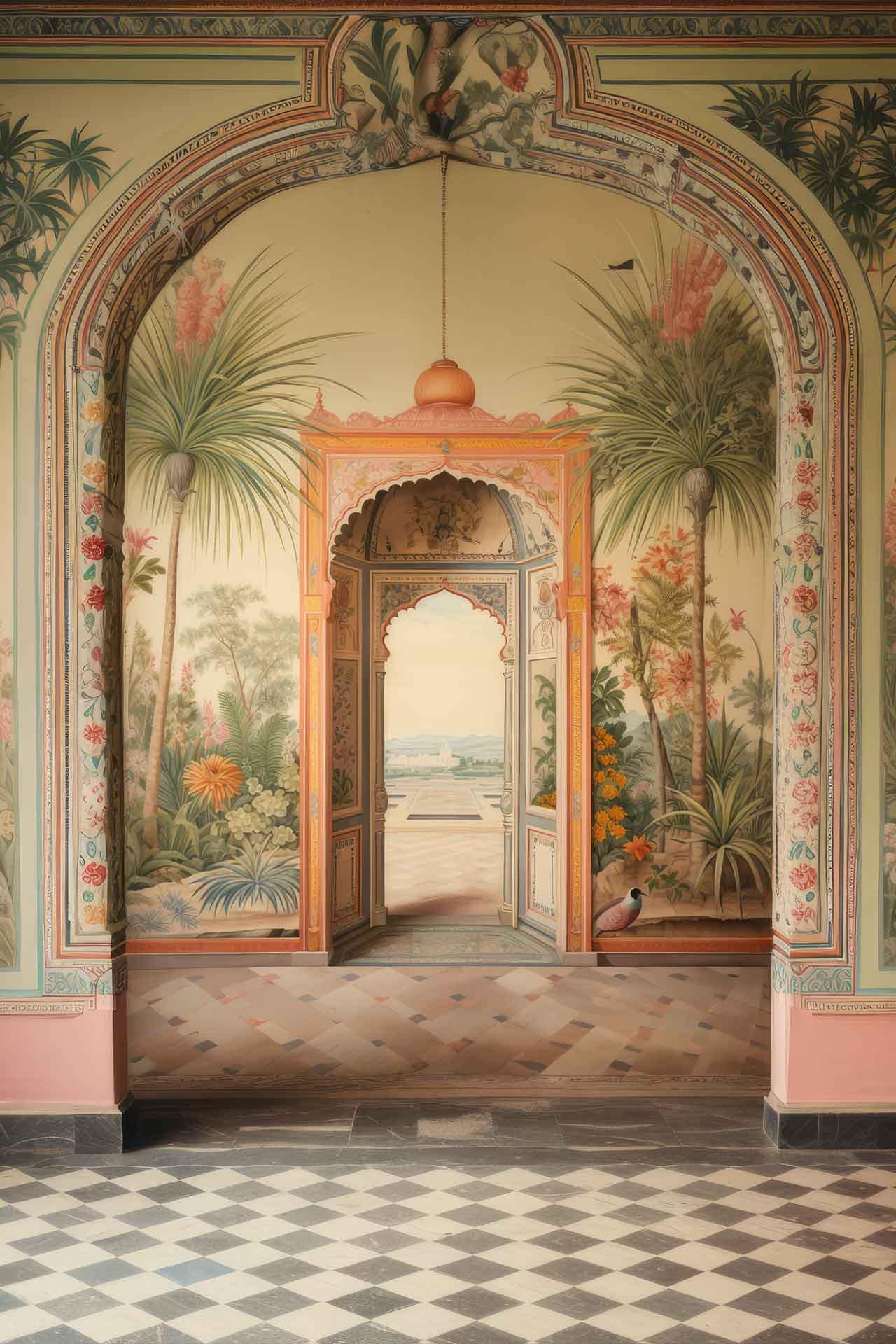 Wallpaper visualizer showcases a wallpaper design with distinct elements and colors, making patterns and shades easily searchable. The focus is on the wallpaper's features as displayed within the minimalist interface.