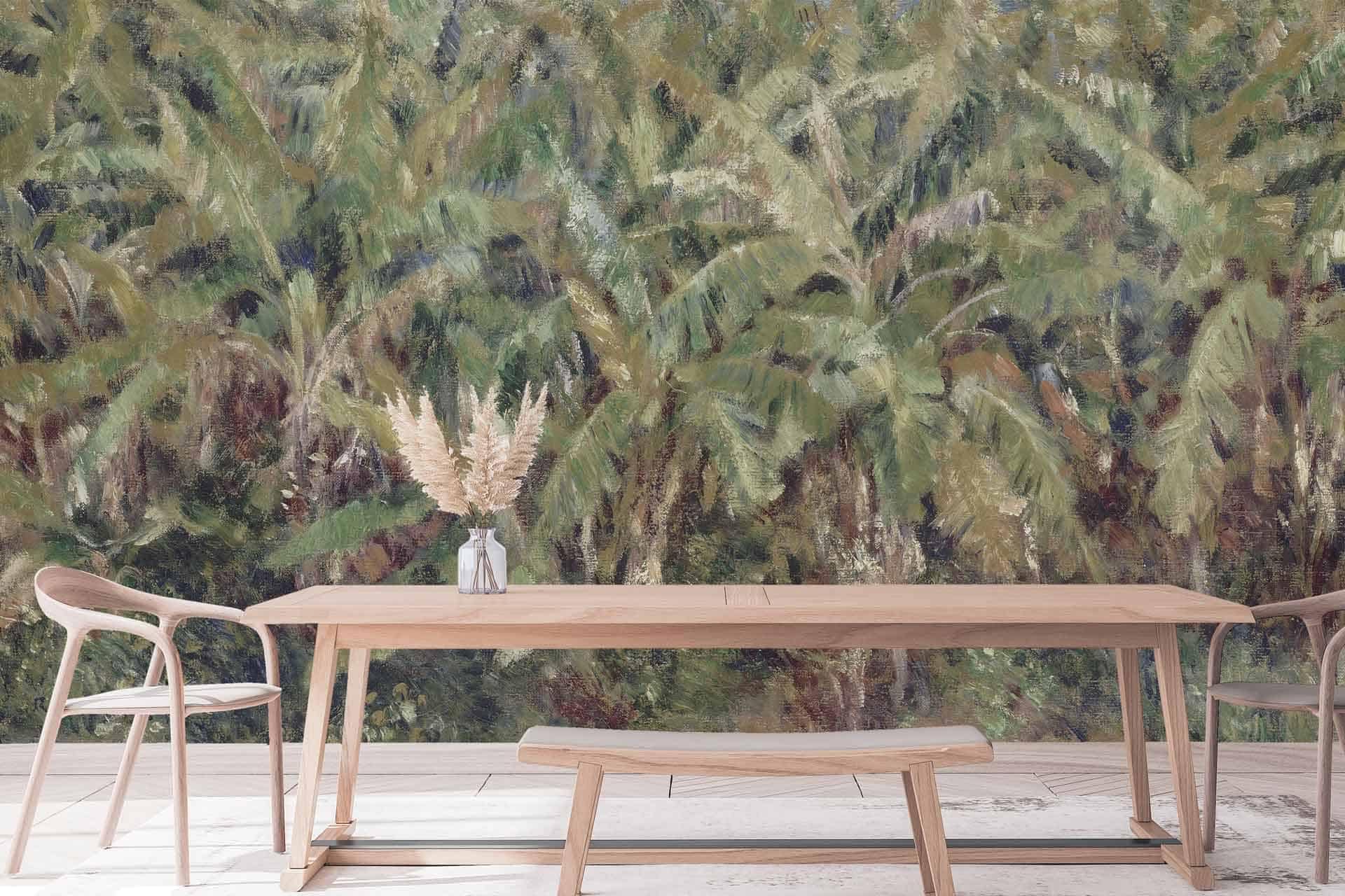 Brushes with Palms is a wallpaper design that is part of our Vintage collection. As with all our designs, it will be redesigned to suit your wall size and shape. Additional changes can be made to the colour and scale of the design at your request.