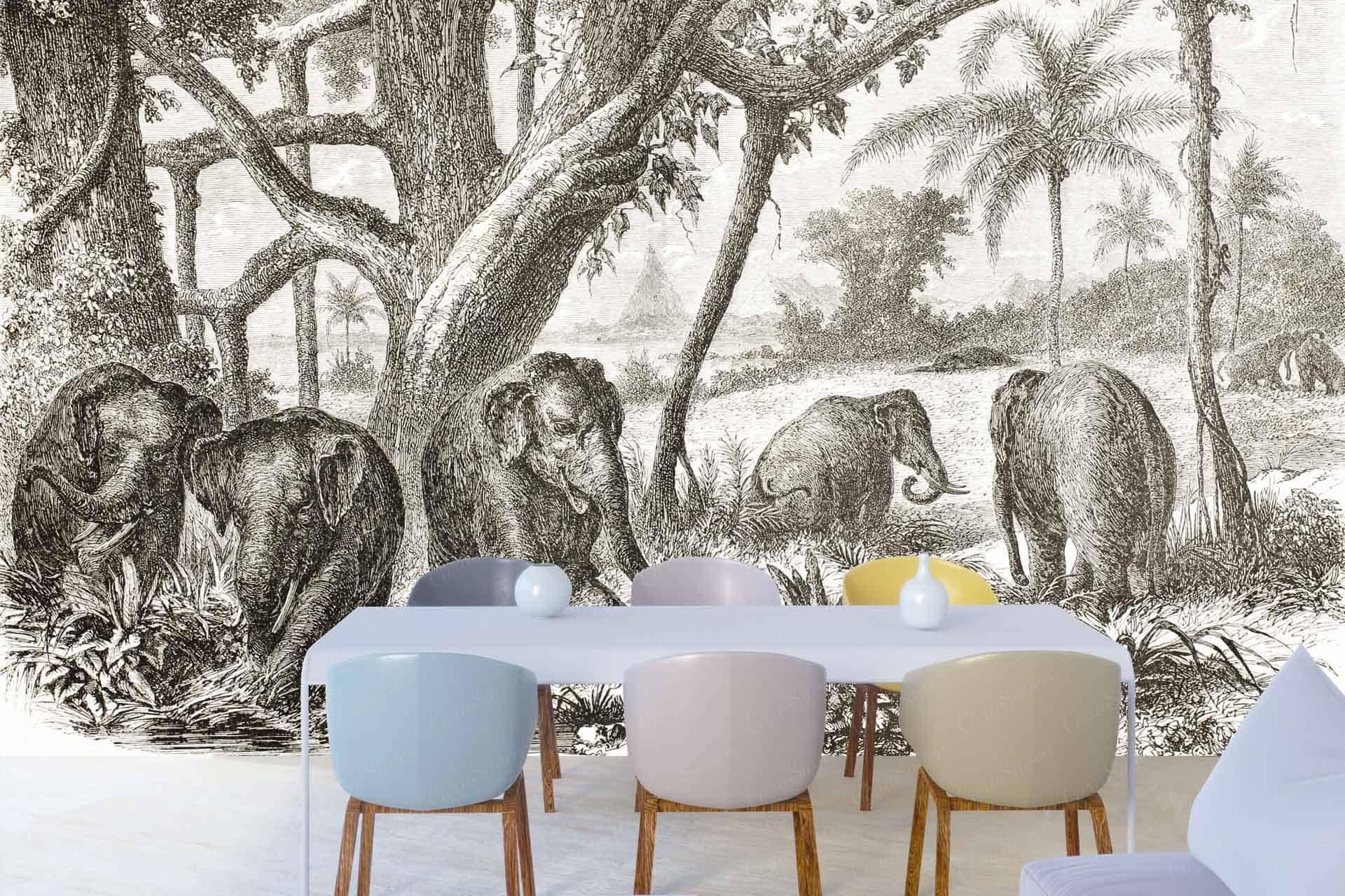 Family Dinner is a wallpaper design that is part of our Vintage collection. As with all our designs, it will be redesigned to suit your wall size and shape. Additional changes can be made to the color and scale of the design at your request. * Please note this image is derived from an old vintage painting/print and does not print out as sharply or crisply as our other designs.
