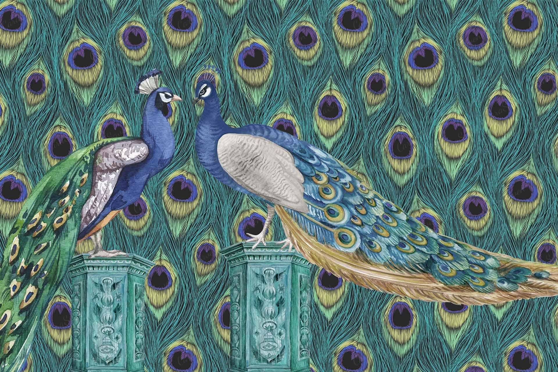 Vibrant floral and bird wallpaper featuring colorful flowers and birds in lively patterns, with bold hues of pink, green, blue, and yellow creating a dynamic focal point in the room.