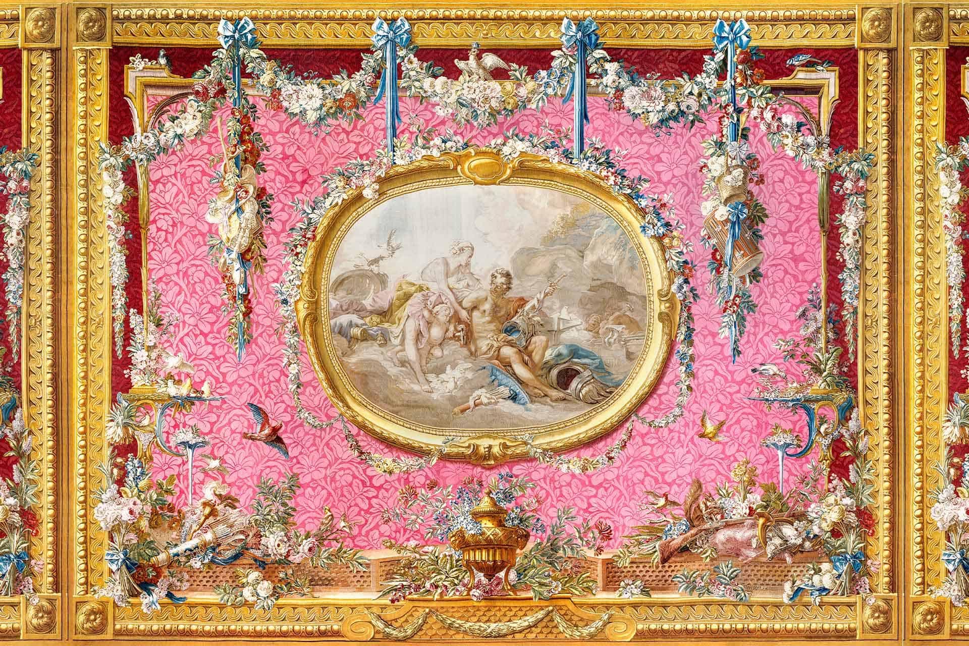 Vibrant floral and bird wallpaper featuring colorful flowers and birds in lively patterns, with bold hues of pink, green, blue, and yellow creating a dynamic focal point in the room.