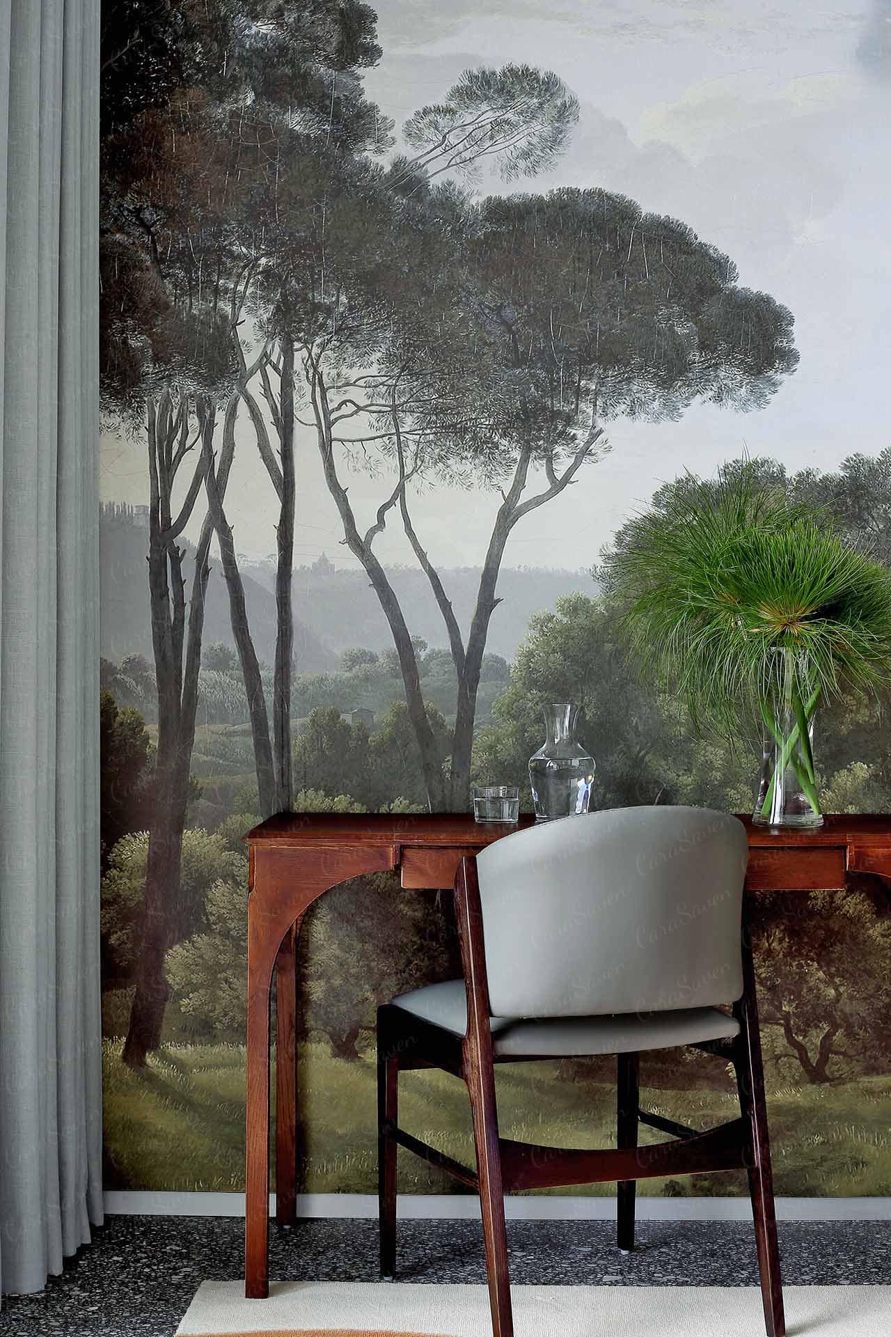 Henriks Trees is a wallpaper design that is part of our Vintage collection. As with all our designs, it will be redesigned to suit your wall size and shape. Additional changes can be made to the color and scale of the design at your request. * Please note this image is derived from an old vintage painting/print and does not print out as sharply or crisply as our other designs.