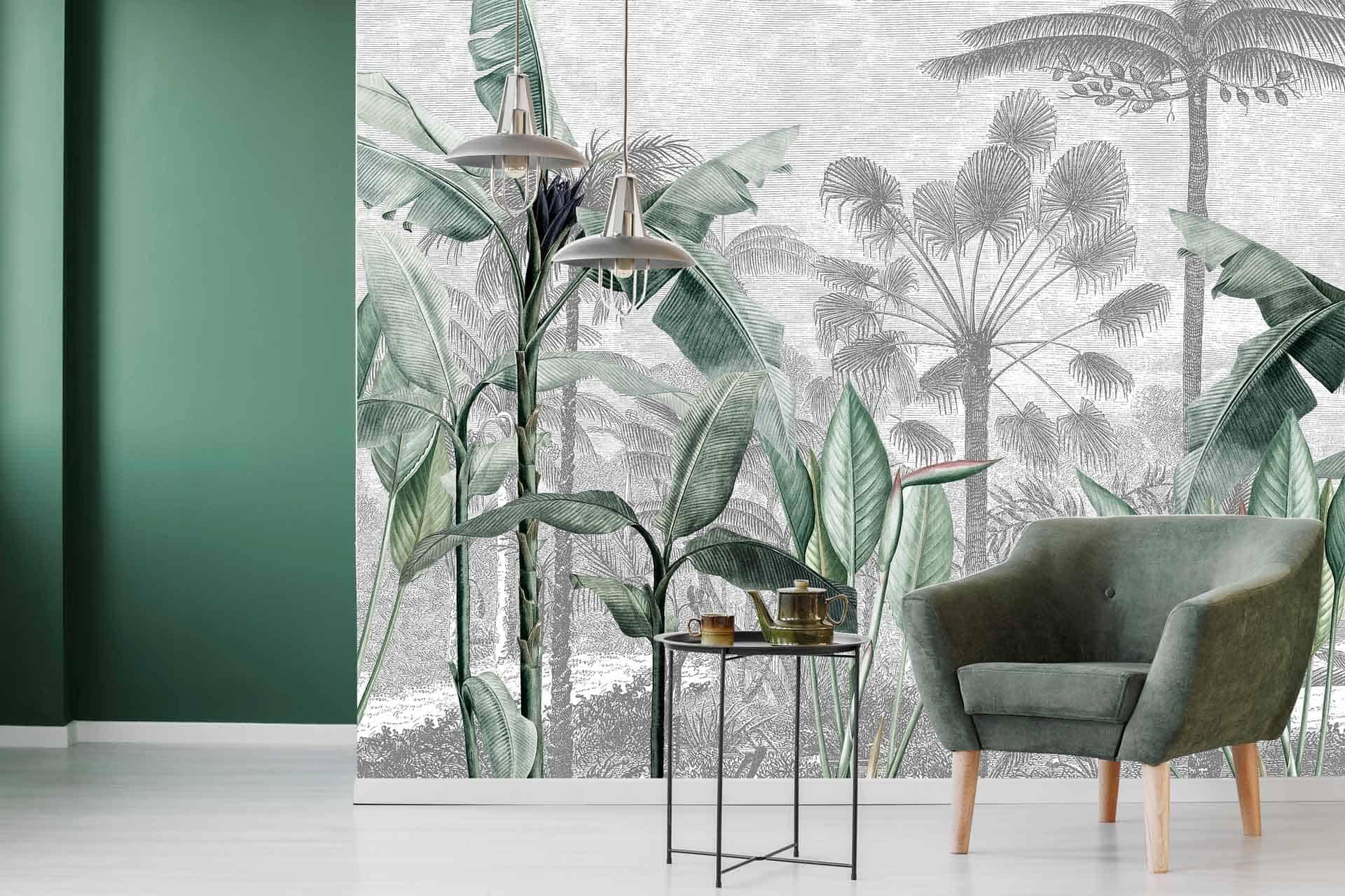 KZN Palms is a wallpaper design that is part of our Vintage collection. As with all our designs, it will be redesigned to suit your wall size and shape. Additional changes can be made to the color and scale of the design at your request. * Please note this image is derived from an old vintage painting/print and does not print out as sharply or crisply as our other designs.
